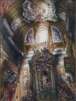 Angels inside Santa Maria in Trastevere; 21x28 cm; 2013; tempera on paper lined on canva; artist's collection
